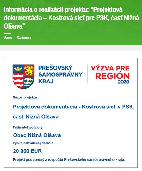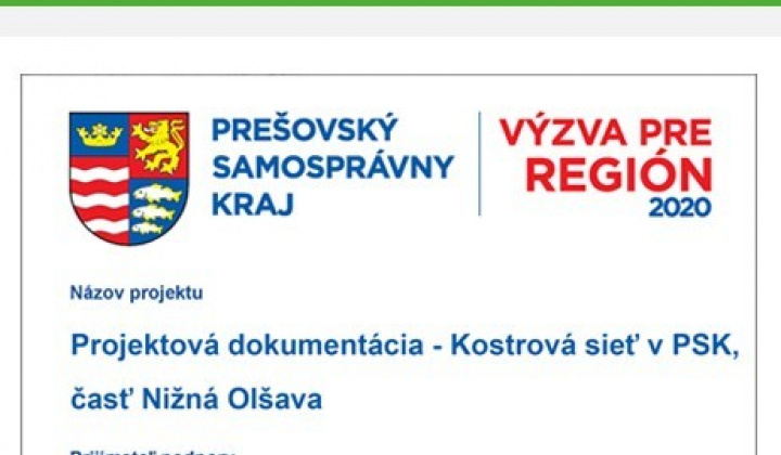 Informácia o realizácii projektu: “Projektová dokumentácia – Kostrová sieť pre PSK, časť Nižná Olšava